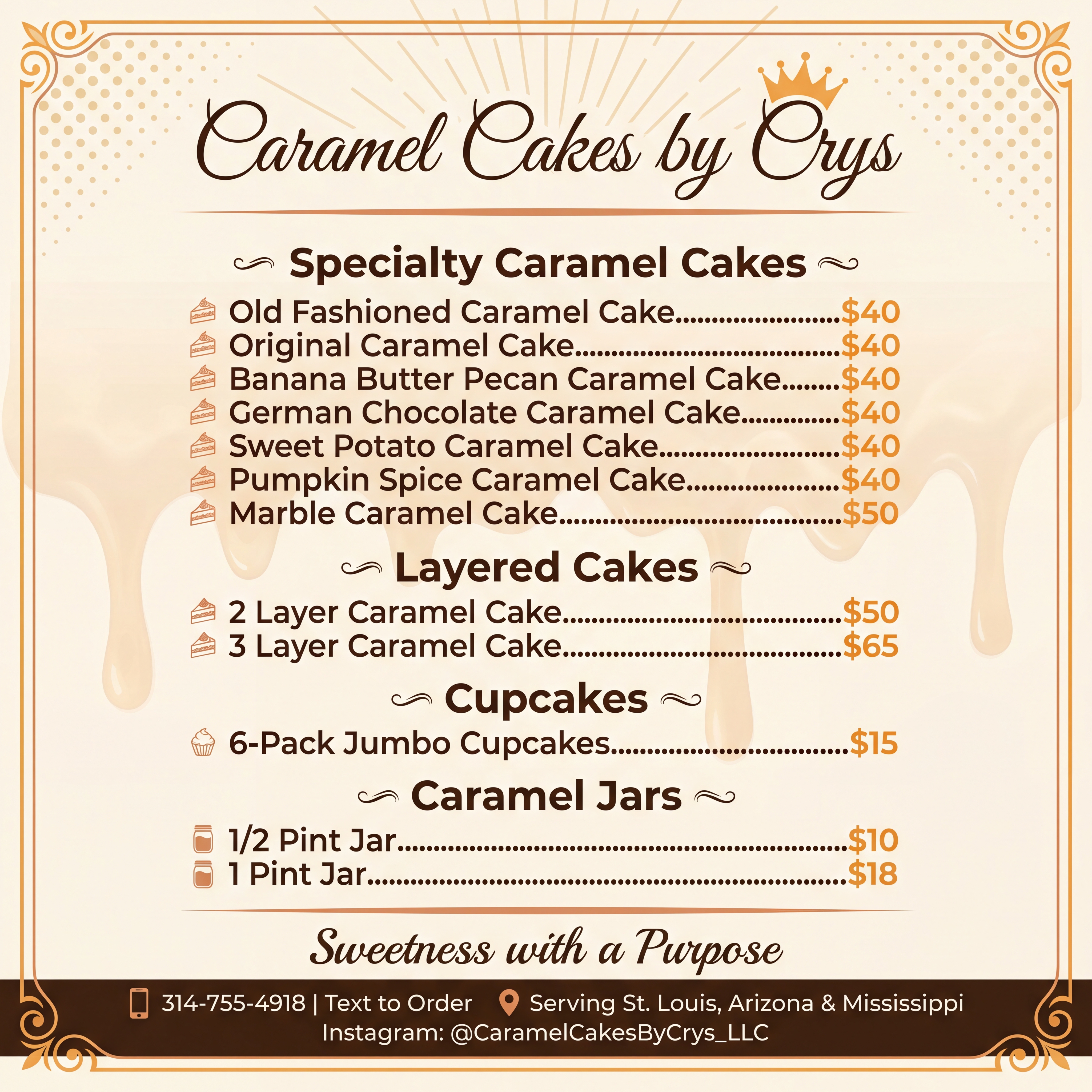 Indulge in our signature caramel cake—three tender layers, each brushed with rich, homemade caramel. Every cake is baked to order, wrapped with care, and shipped quickly so you can enjoy that just-baked taste, wherever you are.